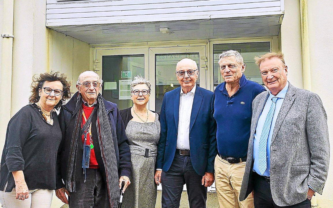 Trois anciens présidents du Club de bridge, Bernard Gaudron, Yves Aubry et Georges Soubirou autour de Gilles Boché, l’actuel, de la secrétaire Myriam Coville et de la vice-présidente, Isabelle Eono.